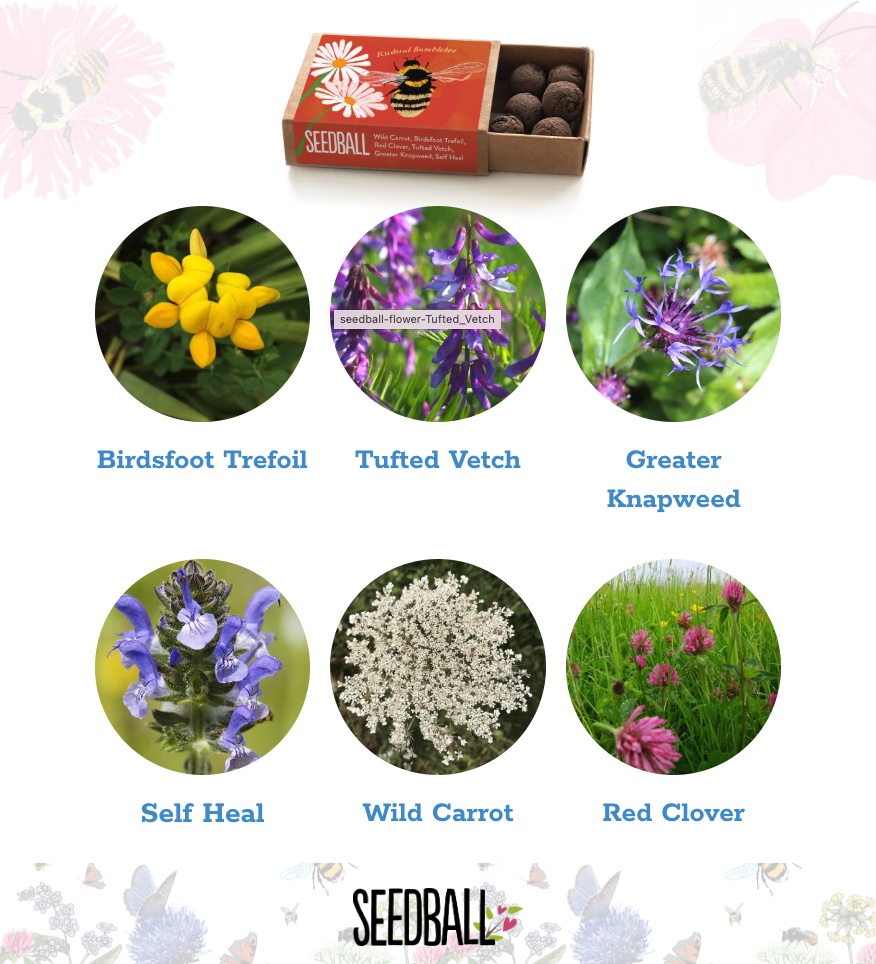 There’s no need to dig! As the seeds are encased in clay and peat-free compost, they are essentially already “planted”. Simply scatter onto bare soil or compost (avoid scattering on grass) on a garden bed or in a pot. The outer clay helps to prevent birds and insects from eating the seeds, keeping the seeds nicely protected and ensuring your wildflower garden has every chance of growing success.
